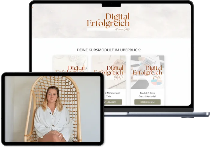 Du erhältst Zugriff auf 9 umfassende E-Learning Module plus wertvolle Zusatzmodule, die dich Schritt für Schritt durch den Aufbau deines Online Business führen. Jedes Modul besteht aus mehreren Lektionen, die dir die Inhalte verständlich und praxisnah vermitteln. Du kannst die Module in deinem eigenen Tempo durcharbeiten und hast 12 Monate Zugriff auf alle Inhalte.